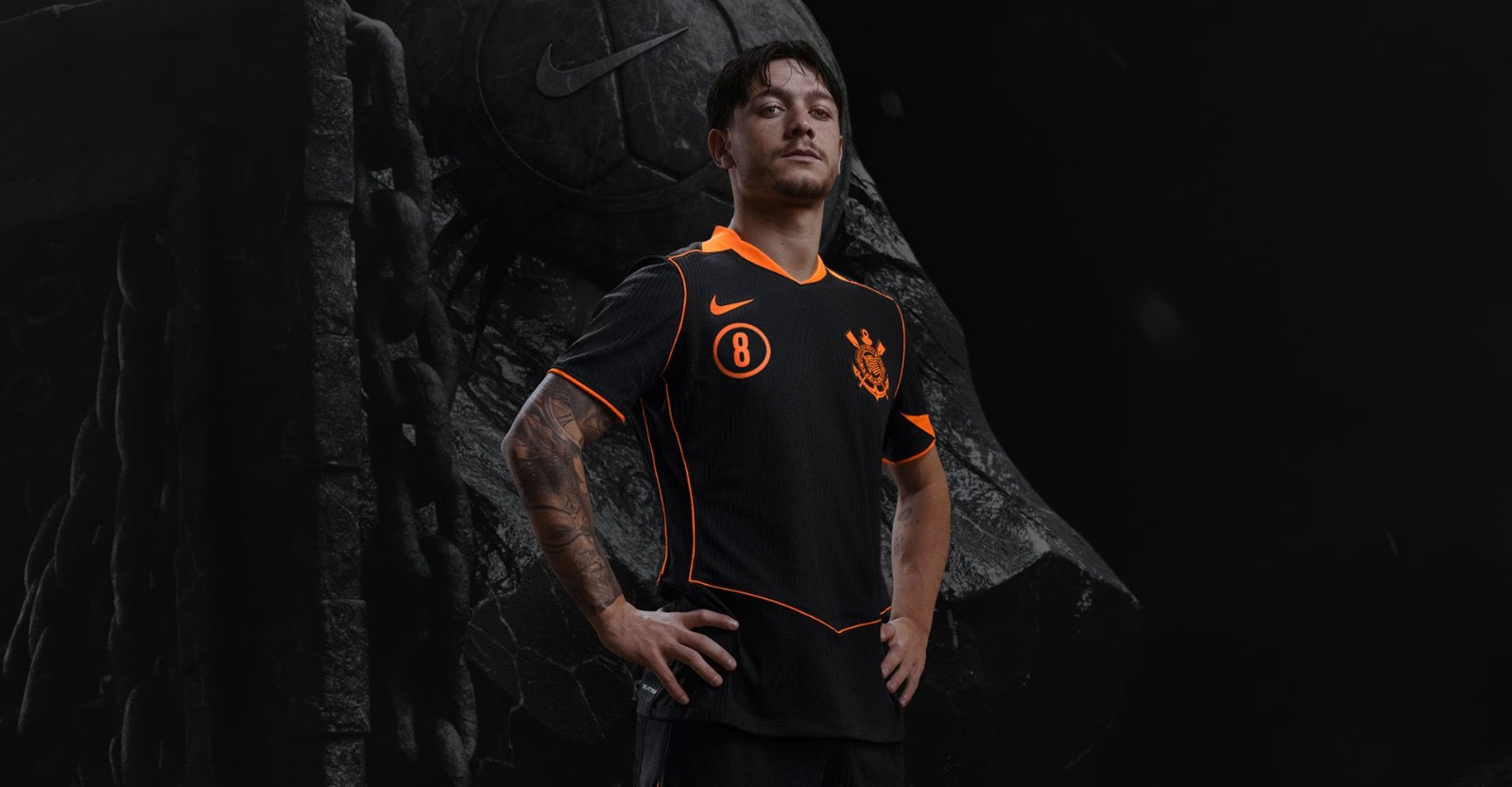 Camisa Corinthians Third 25/26, Camisa Timão Preta e Laranja, Camisa Torcedor Masculina Corinthians, Camisa Corinthians 2025 2026, Manto Corinthiano NR Imports, Camisa Corinthians Edição Especial